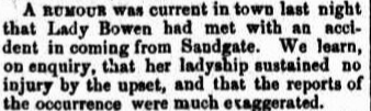 Topping off a tumultuous first two years in Brisbane, there occurred an incident that could have killed Sir George or Lady Bowen, and very nearly put a dent in the Colonial Secretary’s beaver. I trust and pray that this was the Colonial Secretary’s beaver hat. It isn’t clarified in the article.