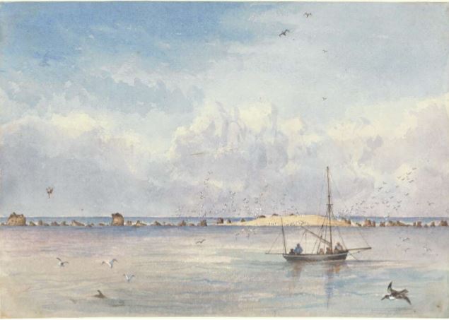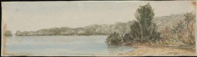 A watercolourist named Edwin Augustus Porcher made a series of paintings between 1843-1845 during a voyage to Australia and adjoining islands in H.M.S. Fly. Here is some of his work: