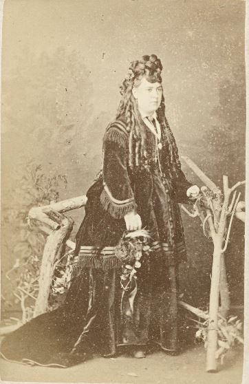 This poor woman deserves a medal for what she endured in the name of posterity. Her hair, possibly partly a hairpiece, is styled in the Empress Elizabeth of Austria fashion, a confection that would have taken hours to create. Her unflattering clothes are heavy and heavily fringed, the entire presentation makes her visibly uncomfortable. She is then asked to stand near a “rustic” fence prop with a vague forest scene painted on the background in a studio in the sub-tropics before the invention of air conditioning. I know it wouldn’t have happened, but part of me hopes she gave the photographer a piece of her mind, or better still, a piece of that fence.