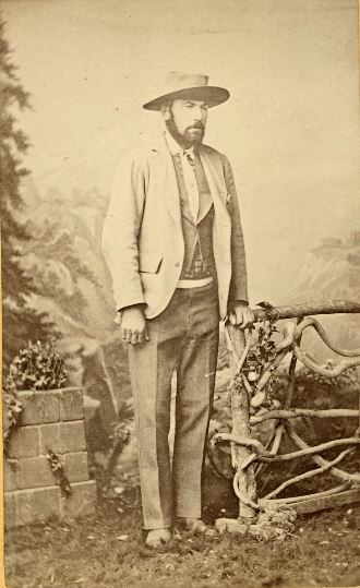 You can see the despair in this man’s face and posture. Hat, jacket, waistcoat indoors in the heat, while that wretched photographer fellow makes him stand still for ages next to a faux brick wall and a gate made to look “rustic”. He is visibly hoping that his friends don’t see him like this. Perhaps he is a rural landholder, if the props are anything to go by.
