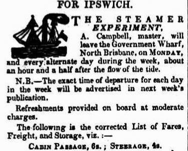 For those who preferred a peaceful river journey to the harum-scarum of bouncing around on carriage springs over rutted roads, there had been a regular steamer to Ipswich since free settlement. And it had classes of passenger, too.