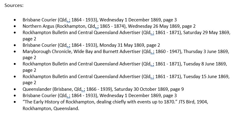 Williams and Palmer were hung at Rockhampton Gaol on the morning of 24 November 1869, during a wild tropical thunderstorm.