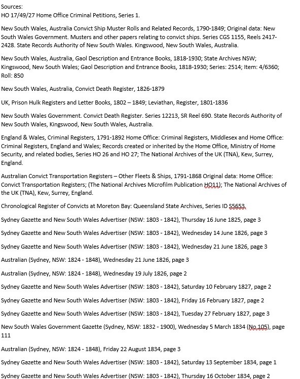 For information about the trial, I recommend the report of R. v. Walton et al. [1827] NSW Sup C 7; which can be found at the Macquarie University website, Decisions of the Superior Courts of New South Wales, 1788-1899. http://law.mq.edu.au/research/colonial_case_law/nsw/cases/case_index/1827/r_v_walton_et_al/