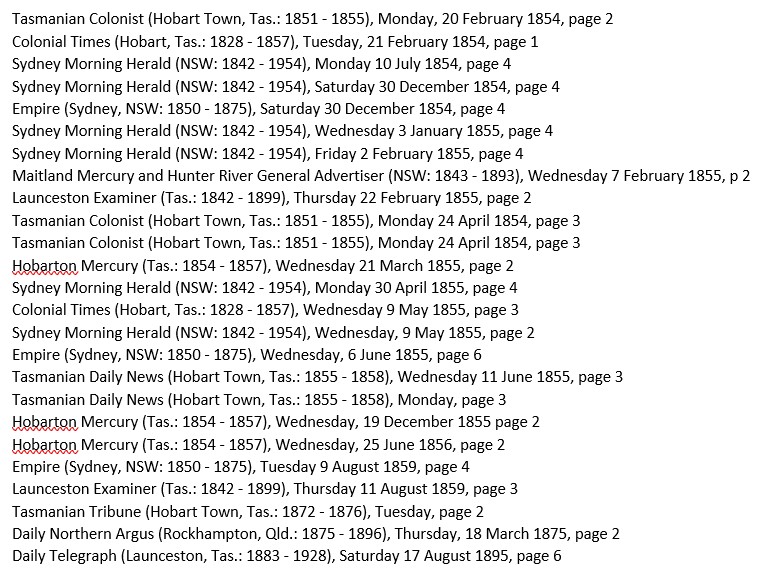Hobart Courier, 27 January 1854.