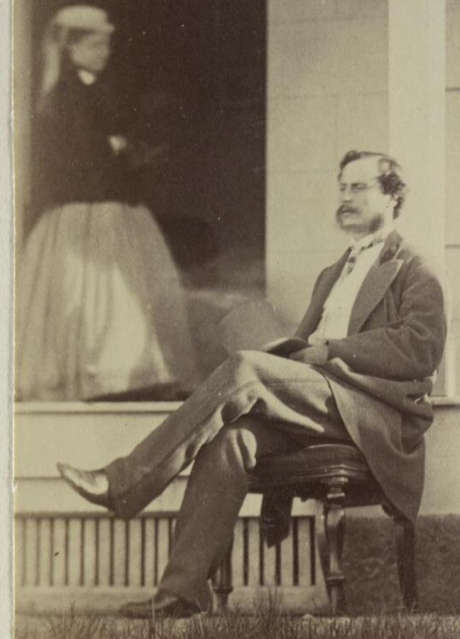 These two beauties were noted Italian opera singers, and, of course, sisters. Miss Carandini is the most relaxed and natural looking person in any of the group portraits. I’ll include the full view, which contains a slightly blurred puppy and something mysterious in the window. Another ghost? Or just an indoor light?