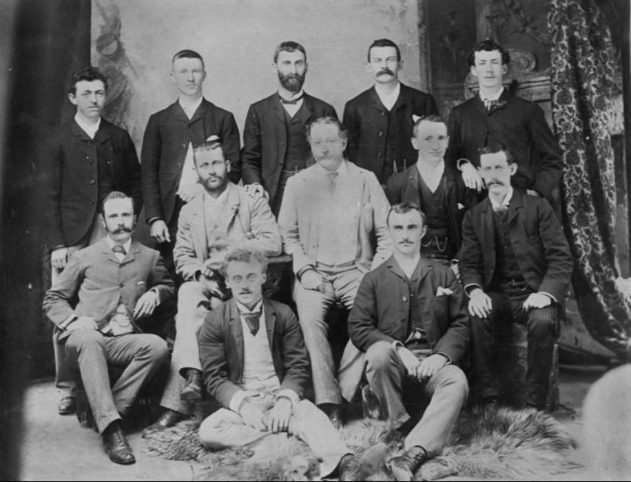 The Brisbane Gymnastics Committee, circa 1890. Clearly, gymnastics was a deadly, desperately serious business, requiring three-quarters of committee members to wear moustaches.