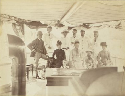 The Hume family, who left their extensive photo collection for posterity, take a ride on the gunboat HMQS Gayundah in the 1880s. The wreck of the Gayundah now lies at Picnic Point, near Woody Point on the Redcliffe Peninsula, Queensland.