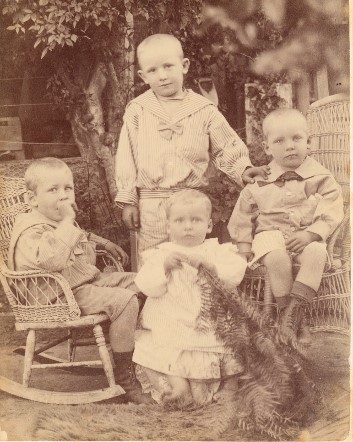 All the children bar the littlest have been liberated from petticoats, and are enjoying their sailor suit years. The littlest has taken their revenge on Mama’s fern collection.