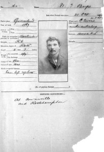 A fair bit of hunting reveals that he is William Townsville Boyes, born in Townsville on 25 August 1865 to William Watson Boyes and Catherine Halpin. He’s a little older than his prison record shows, and he was charged and convicted under an incorrect version of his surname.