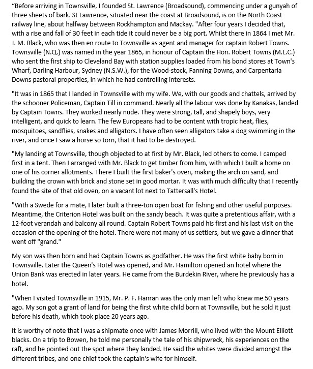 - Sadly, he was not married to the mother of the first white boy born in Townsville. Both parties married other people within 18 months of William Townsville’s birth.