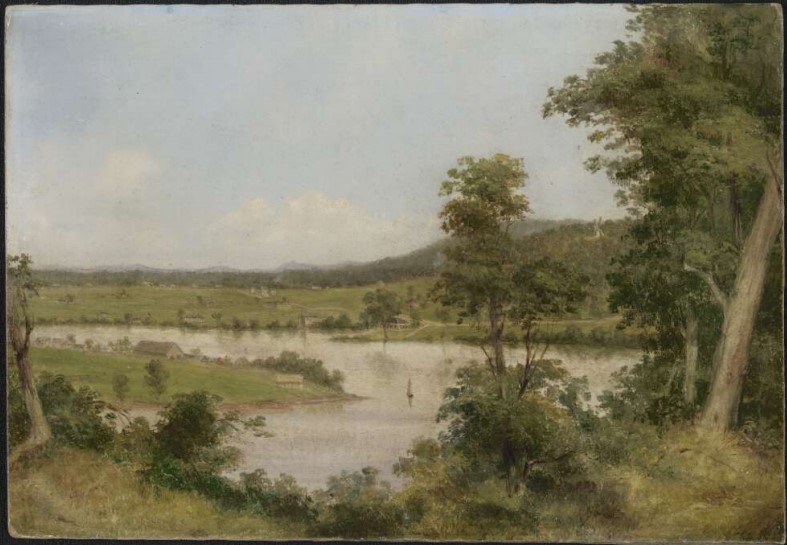 This depiction looks like it was painted much earlier than Thomas Baines’s view of South Brisbane, but it was actually produced later. Baines sketched out his work in 1855, completing the painting in 1868, but there appear to be more buildings in 1855 than 1864. All in the interpretation I suppose. The buildings do look more substantial in Stanley’s watercolour, but the scenery is not as detailed in its execution.