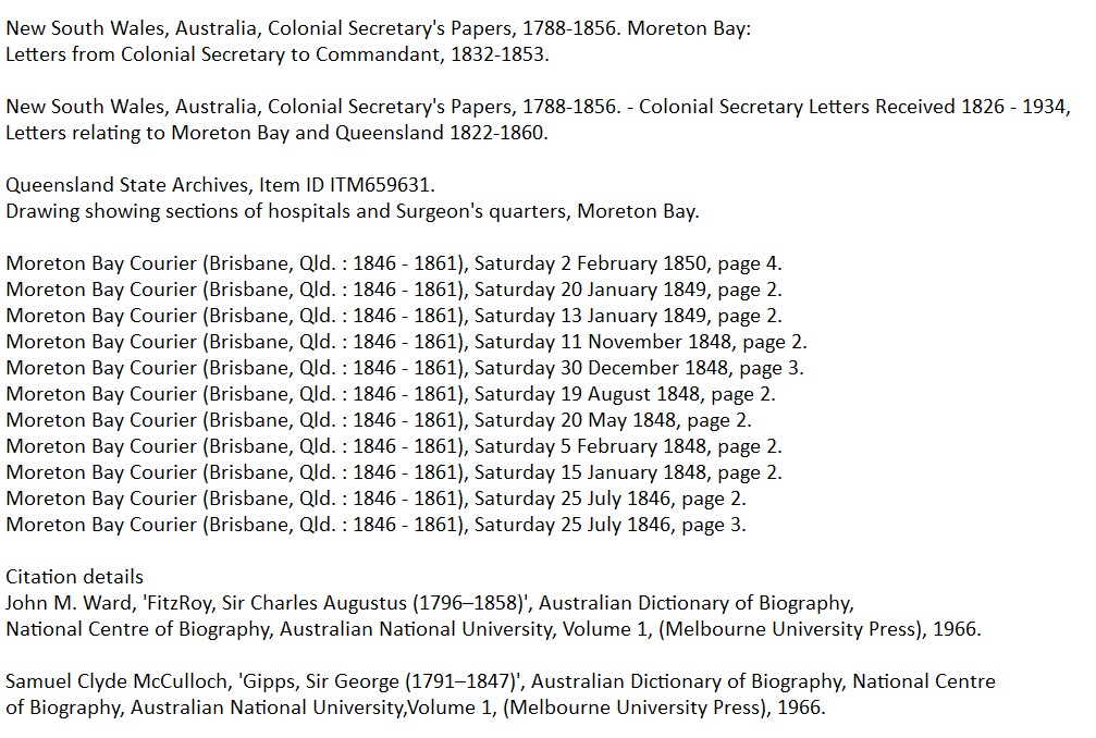 Sir Charles FitzRoy was quick to allow the handover of the hospital and stores to the clearly prepared local officials. Unlike his predecessor, he did not hector or obstruct Wickham and Ballow about the plan to replace the Convict Hospital.