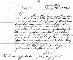 I am directed by His Excellency the Governor to inform you that here will be no objection to give the Building over to a Committee of Gentlemen for the benefit of the District in the event of it being proposed to establish a Hospital with the assistance of voluntary contributions – and to leave with the Committee the Surgical Instruments, stores etc now belonging to the Hospital. I have therefore the honour to request your further report.