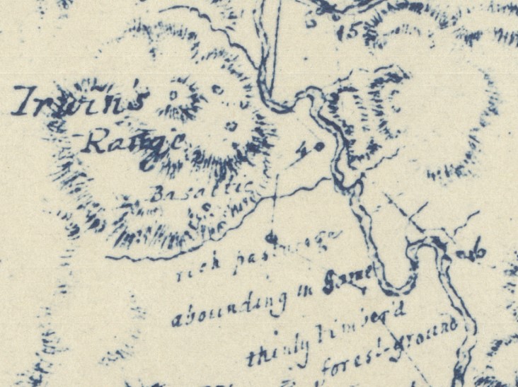 Allan Cunningham’s Geographical Sketch was not an official surveying document, rather a botanist and explorer’s fascinated account of the countryside he encountered. Very little of what he saw had been named by Europeans, and Cunningham was free to describe the country in his own terms. He took measurements, naturally, but also included in his sketch the semi-poetic description of tracing the river by a line of mist, and noticing pastural land “abounding in Game.”