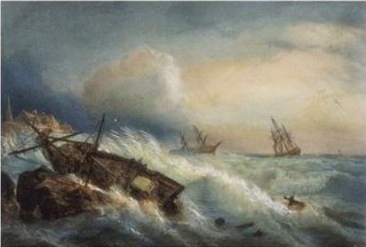 Captain Cape, who had more than once been washed overboard, was holding on by the shrouds. Mr. Stubbs, who appears to have maintained his presence of mind throughout, now cried out, “avoid the suction,” and jumped overboard. One dreadful shriek was heard, proceeding from one of the females in the fore part of the ship, as she took one roll, heeled over, and sunk, and then all was still. The struggle for life then commenced; some of the passengers clung to the wool bales-some to portions of the wreck-while others, who had been disabled on board, soon sunk to rise no more alive.