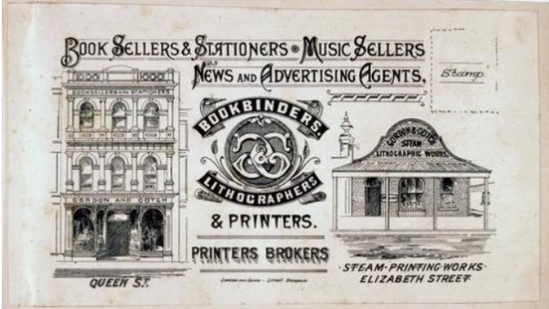 Gordon & Gotch Postcard, 1885. The perennial stationers of Brisbane – in the 1880s there were two big locations.