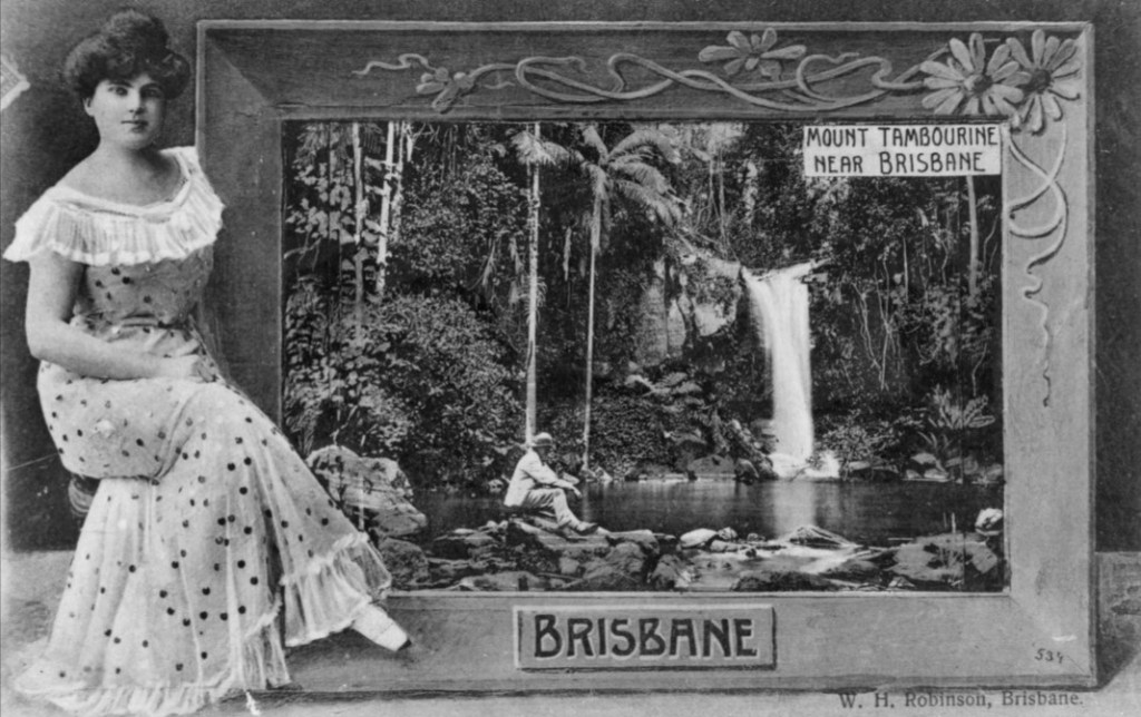 Our forebears had a different approach to postcards. They could be decorative – genuine keepsakes. They could show Improving Subjects – churches and rural industry. They could be charming – painted and idealised views of Brisbane, hand-coloured photographs of seaside towns. They could be puzzling – imagine sending the relatives a postcard of a flood, or the smokestack of a mine, or a cherubic child ready to lay down his young life to defeat the Kaiser.