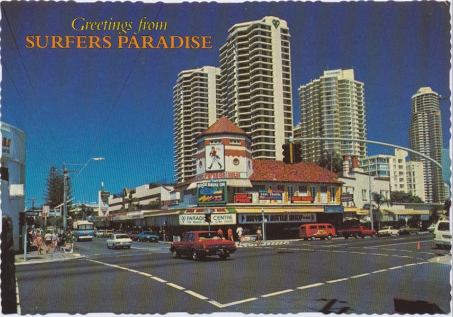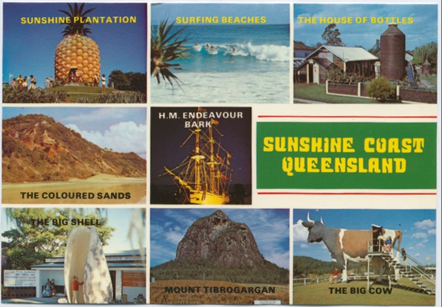 Ah, postcards. Memories of the luridly-coloured “Greetings From Sunny (insert own sunny destination here),” sent from faraway places like Caloundra and Burleigh Heads. Well, it took us half the day to get there, what with the ancient Fiat’s radiator overheating as we trundled along behind slow caravans, and no passing lanes in sight.