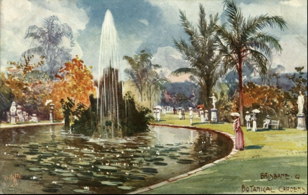 A moment at the City Gardens. Colourful larrikins were prone to loafing about on the benches, but were not – sadly – depicted in this view.