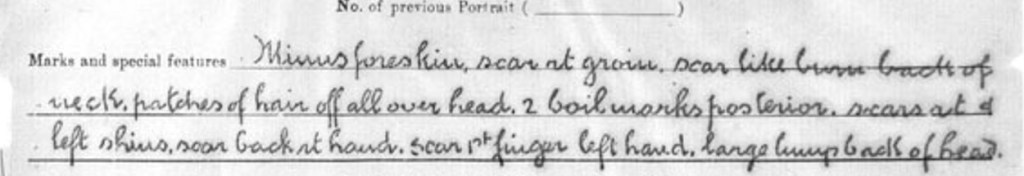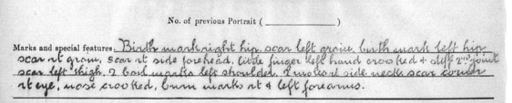 Of course, photographs of prisoners couldn’t tell the whole story. There were other characteristics, and/or markings on their bodies that provided assistance in identifying the person.