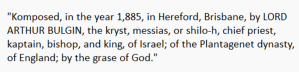 “Lord” Bulgin had drawn attention to himself by publishing some political “manifestos,” which included some miserably composed and bizarrely spelled poetry, which was shared by the Chronicle: