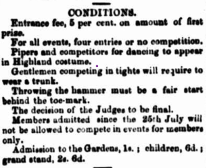 In the balmy spring of 1871, and in aid of the Brisbane Hospital, the Brisbane Caledonian Society offered entertainments in the Botanical Gardens. Competition was open to Society Members, and included the standard Caber Toss and Hammer Throw, and an inordinate amount of flings, reels and sword dancing. Not to mention Consolation Quoits at 11 am.