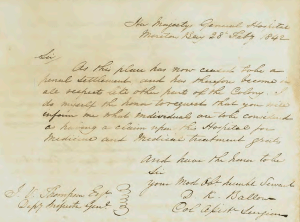 There were still British soldiers in the barracks and a few convicts on bond, and the hospital was theirs to use as required. Initially there were no private doctors, and anyone who needed medical assistance naturally went to Dr Ballow at the hospital. This presented Commandant Owen Gorman and Dr Ballow with such ethical and administrative problems that recourse to the Colonial Secretary, 500 miles away, was sought.