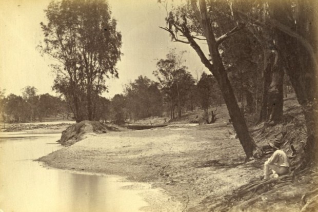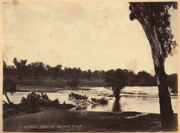The Balonne River at St George. How’s the serenity, solitary gent? 1877.