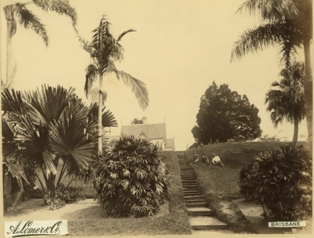 Botanical Gardens and Steps to Curator’s Cottage, Brisbane. The Curator, Walter Hill, can be credited with reviving the inner-city gardens. In the convict area, the land was used for cultivating crops and testing plants for their suitability to the climate. After the settlement was thrown open, the gardens were almost destroyed by grazing livestock. Photo: 1889.