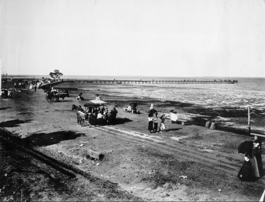 Outing to the seaside, Manly foreshore, Brisbane, ca.1900