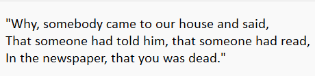 Rumour of his death? They had stated that Tomlinson was dead, in no uncertain terms. Yes, the mistake was initially that of whoever informed the Courier of the identity of the snake bite victim six months earlier. The editors had been informed that the deceased was Mr. Avery, but hadn’t thought to publish a correction.
