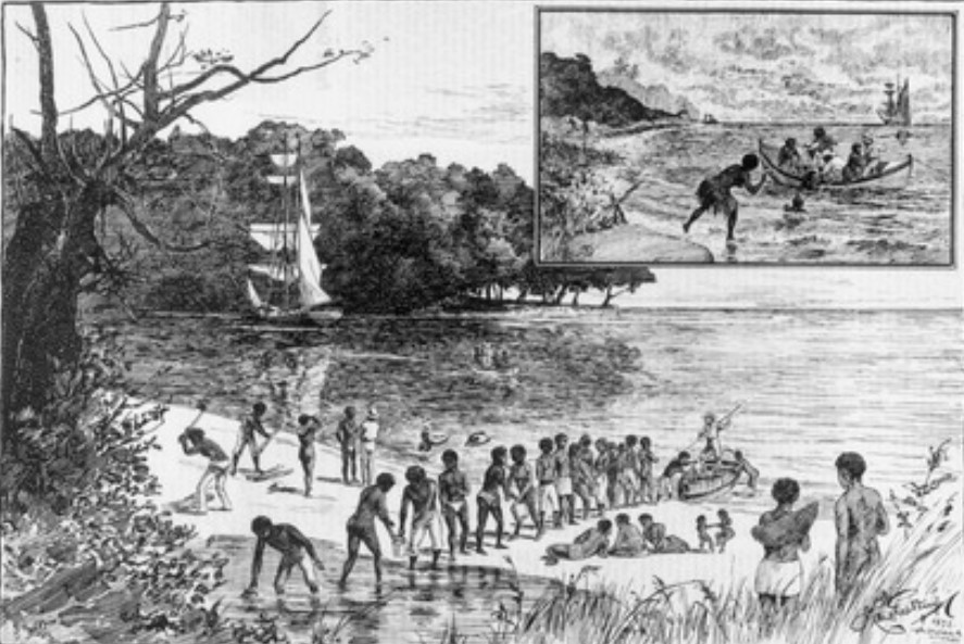 The Hopeful’s boats picked up six of the islanders from the water and took them on board as labour recruits. As they passed by the canoe, the man lying there had not moved, and appeared to be dead. At the time, Messiah said, the captain (Lewis Shaw) of the schooner was on the aft poop, and the Government Agent (Harry Schofield) was drunk below deck.