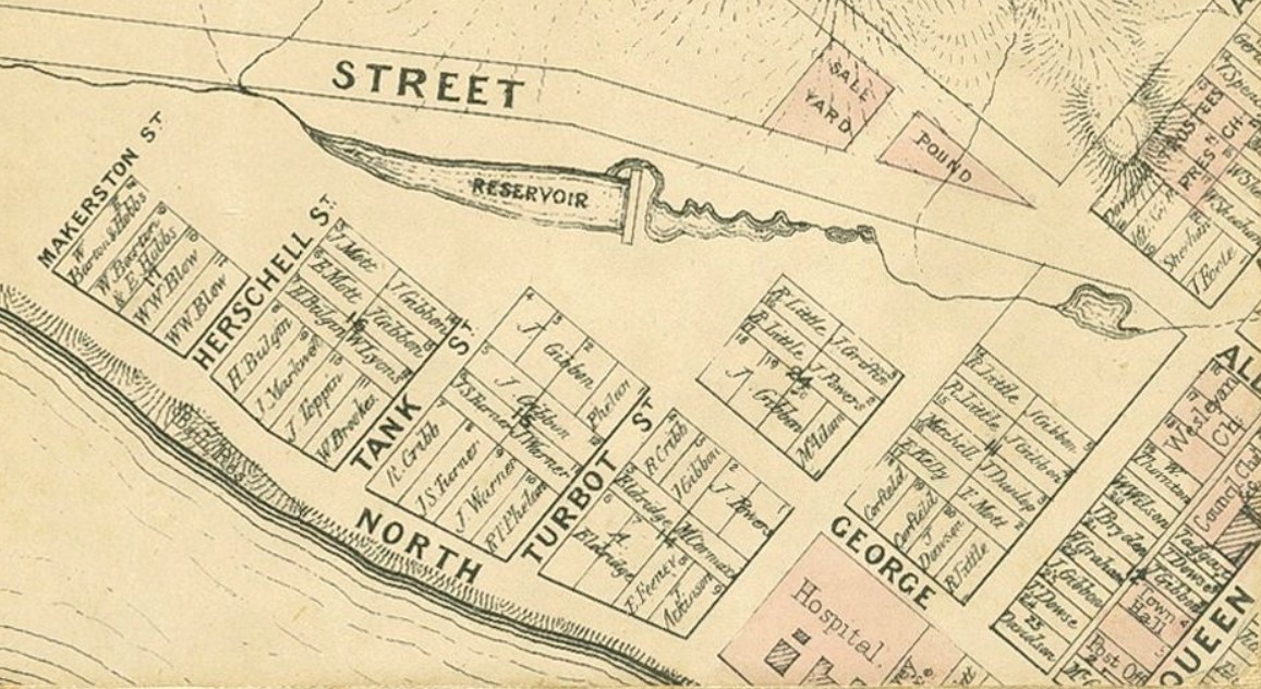 Previous Image Next Image 1865-plan-of-the-city-and-environs-of-brisbane-extract-showing-the-reservoir-and-george-street-slq