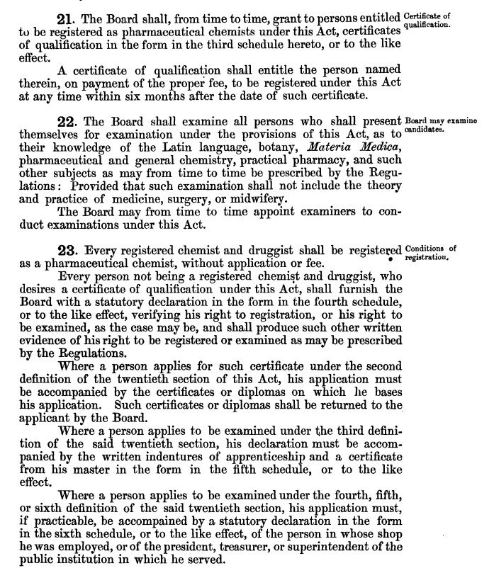 There would seem to be no board of examiners, and it is a matter of history that very little learning is required to enable a person to obtain a chemist and druggist’s certificate from the medical board of Queensland.