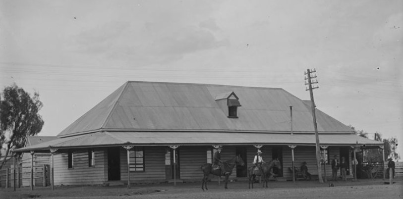 The pub was christened the Ploughman’s Arms Hotel by Whalin, and with his wife Theresa (as she now chose to be known) supervising the kitchen and accommodation, it became a magnet for squatters and workers on their way to and from Jimbour station. Dalby had fifteen public houses at the time, but in the words of Dalby old-timer, Thomas Chambers, only three “had any claim to dignity,” and the Ploughman’s Arms was one of them.
