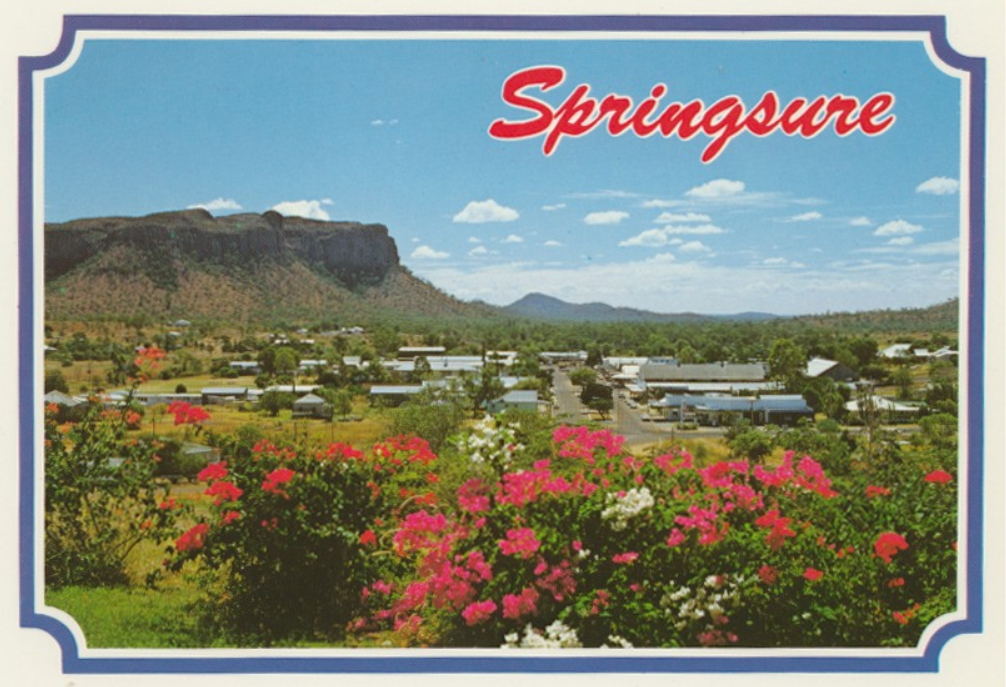 Wikipedia helpfully informs its readers that Springsure is a town of around 950 people in the Central Highlands of Queensland. It boasts cattle farms, and plantations of sunflowers, sorghum, wheat, and chickpeas. It is close to a couple of coal mines, has several historic buildings and is overlooked by the striking Virgin Rock, a large cliff face in the ranges nearby.