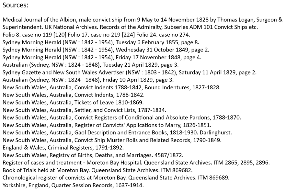We next hear of Samuel Challenger on 22 March 1828, when he was convicted of warehouse robbery at the York Assizes and sentenced to life in prison. A spell in the hulks followed, and on 29 May 1828, he was transported to New South Wales aboard the Albion. His voyage took 158 days and sounds like a miserable one. In June, he became ill with diarrhea off Madeira. In August, he had cyanche tonsilitis, then pyrexia (sudden, acute fevers) in October.