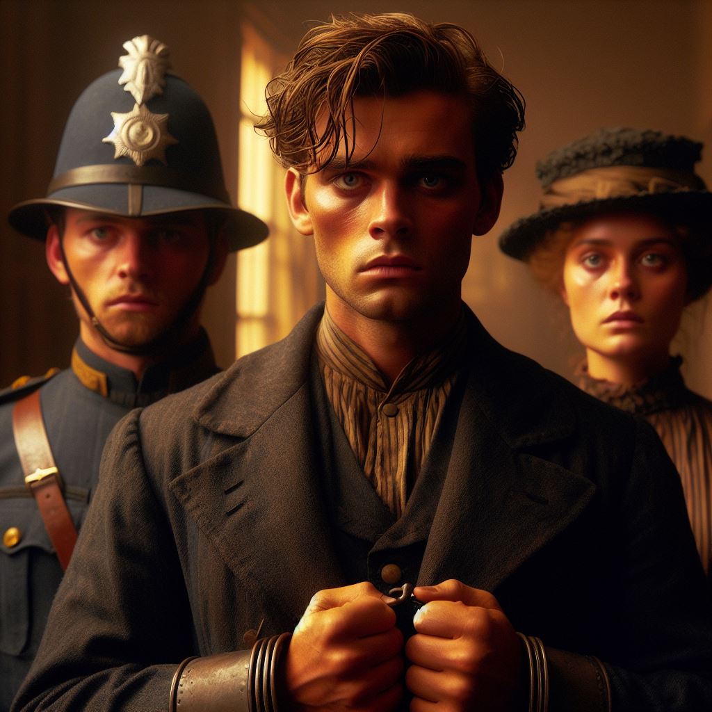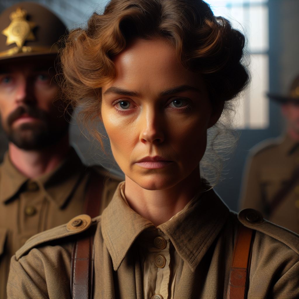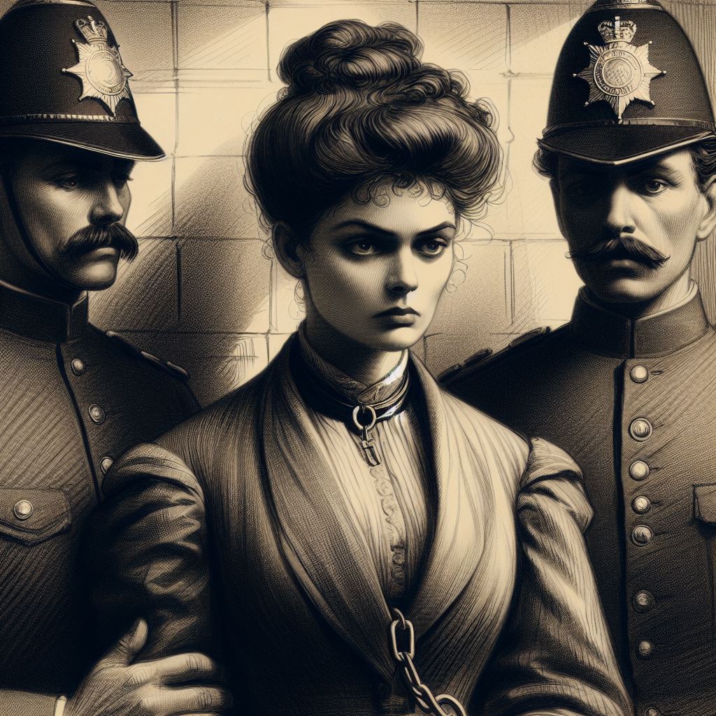 Then, I came to the “late importation of the ferret-like species.” I asked for a sharp-faced woman, accompanied by constables, with the usual specifications of time and place. I received: a suffragette, a young man, and a lady who appears to have been taking part in WW2.