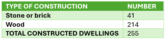 Of these constructed dwellings, 205 were finished, 50 were unfinished. Only six dwellings were unoccupied.