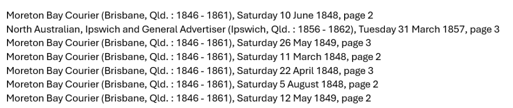 Moreton Bay Courier, April 1848.