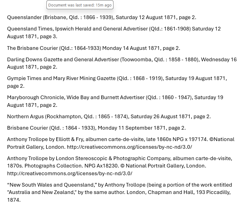 One can imagine that “New South Wales and Queensland” was rather anxiously consumed by Mr Trollope’s former hosts. It was a very thorough and considered examination of Australia, full of information and statistics. It discussed land ownership, the economy, social structure, legislation, politics and society.