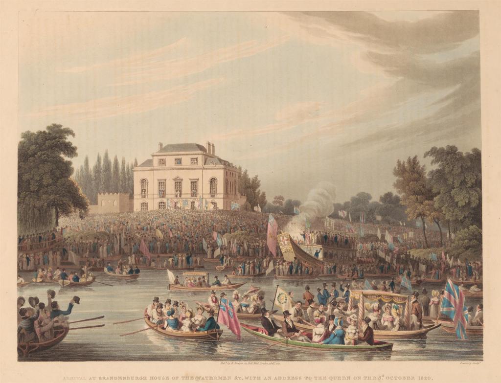 Brandenburgh House was the residence of Caroline of Brunswick, Queen Consort and despised (by her husband) wife of George IV, who had ascended the throne a year prior.