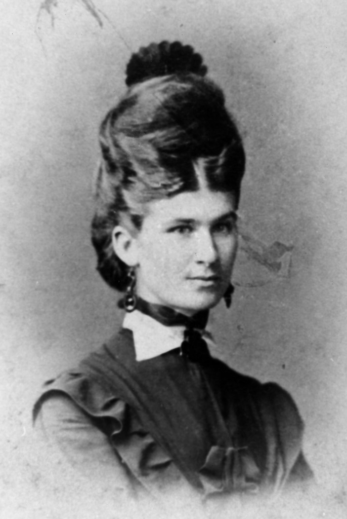 Left: Lela Ballard in 1893, wearing a surprisingly relaxed coiffure that shows off the curls around her face. Miss Ballard may have been wearing long hair gathered up behind her head, or may have been one of those brave souls who chose comfort over extravagant hairstyles.