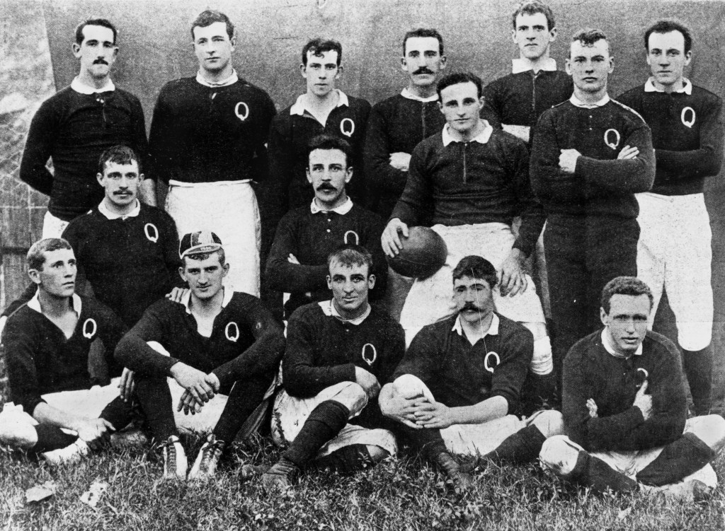 The rival codes: The Queensland Rugby Team, after a bruising match in 1899, and the Brisbane Soccer Team in 1870 (don’t know how their football game was, but their lounging game was on point).