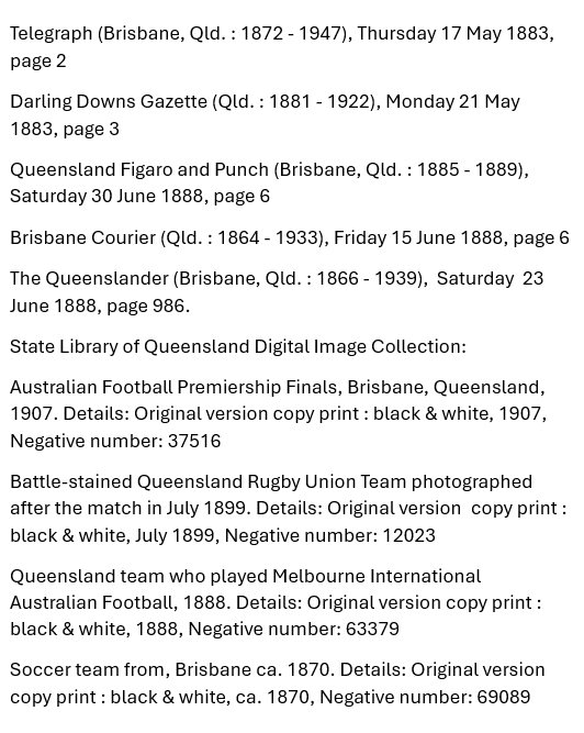 And the Intercolonial Match? There is a two-page analysis in the Queenslander of 23 June 1888, that goes into every play of the ball over the four quarters. It’s exhausting to read, but instructive for modern footy obsessives. The result was unsurprising. Victoria: 6 goals, 16 behinds. Queensland: 3 goals, 5 behinds.