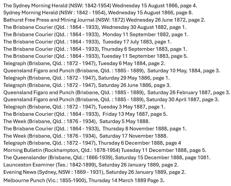 The Brisbane Courier, May 1887.