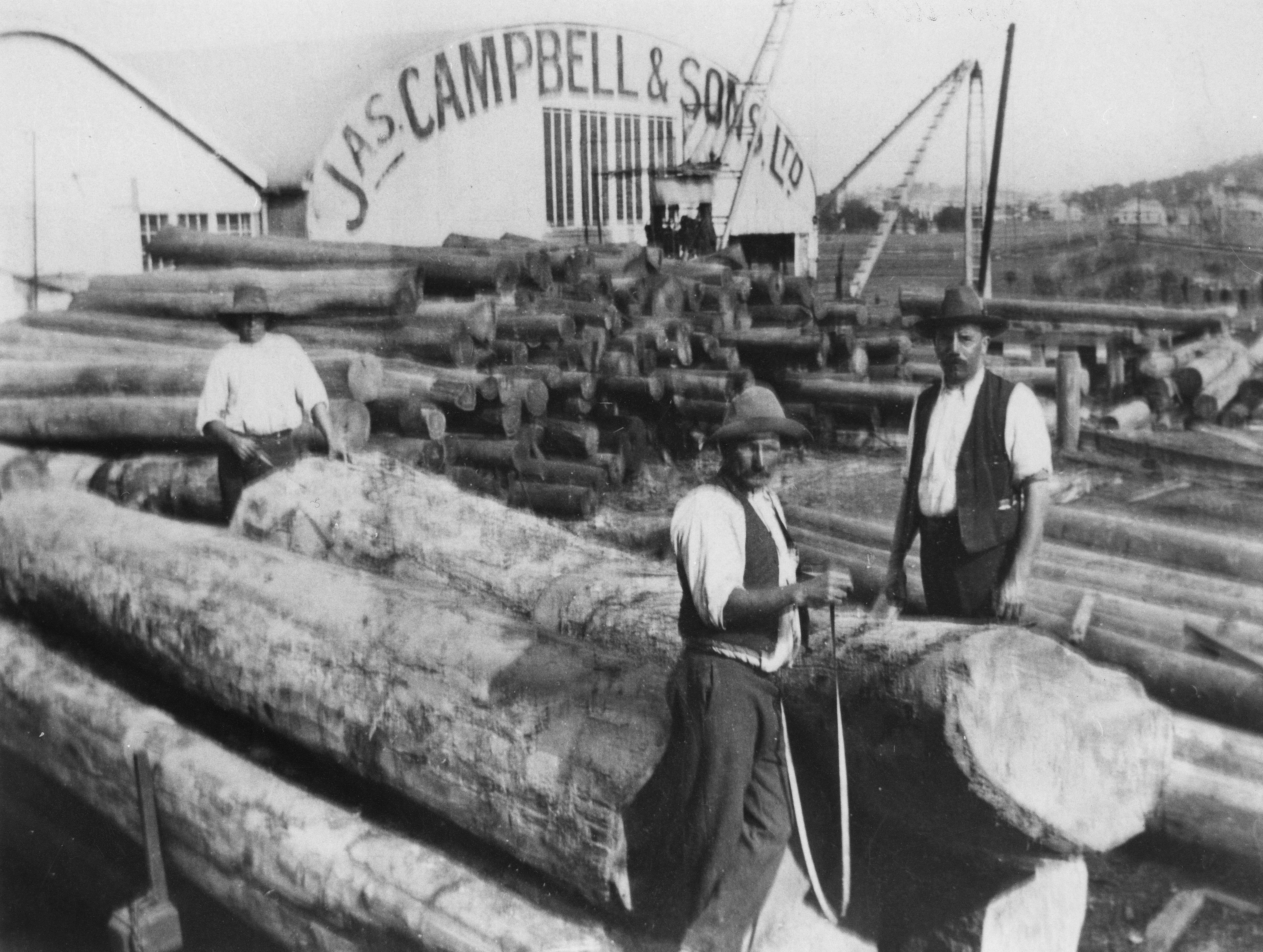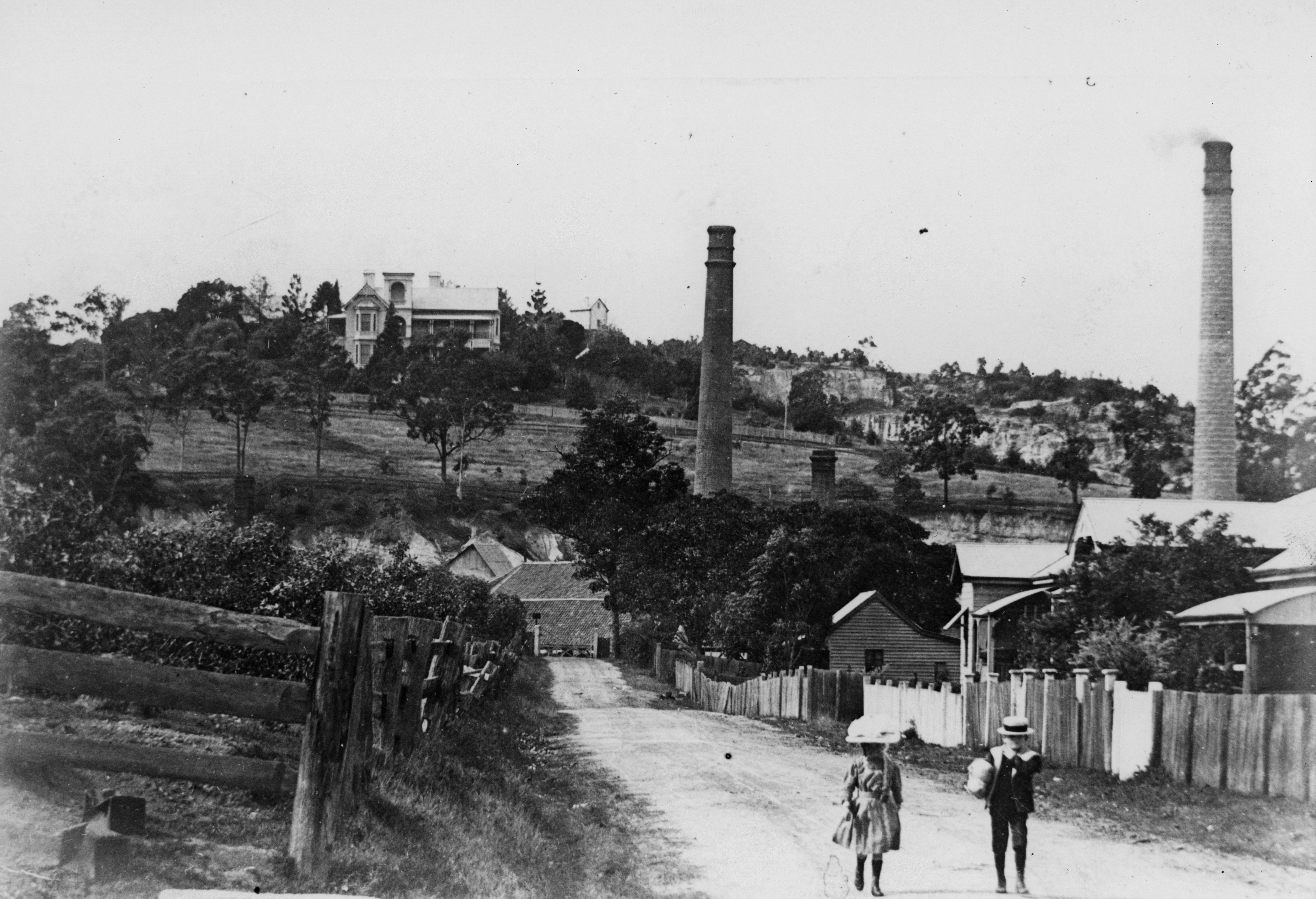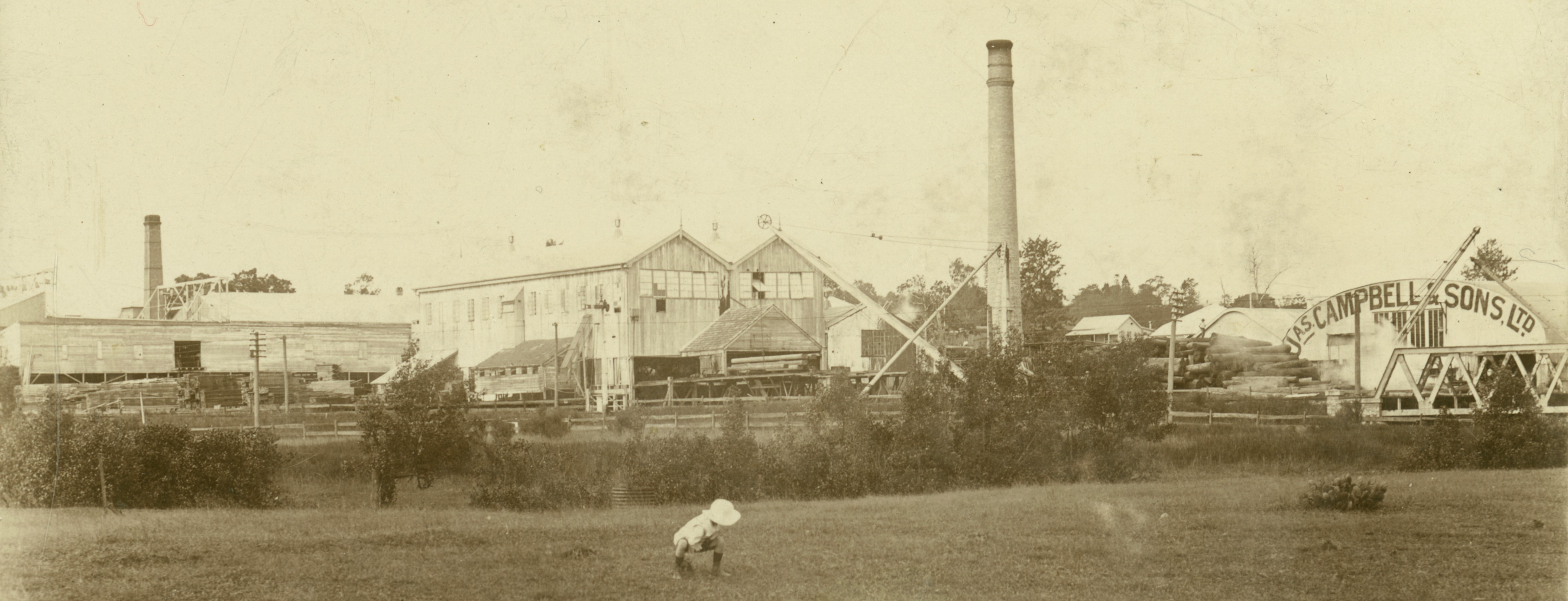 Left: Boy and girl walking up Lever Street. Right: Another view of Jas. Campbell & Sons’ Sawmill.