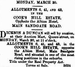 Throughout the next decade, the area around the hotel was colloquially known as “the Albion.” Country estates were built there, notably “Whytecliffe” and “Moolooburrum.”