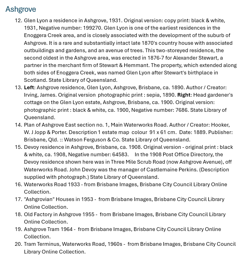 (I spent most of my childhood in Ashgrove. In the grand tradition of my family’s fortunes, we sold and left before the suburb became fashionable, and couldn’t afford to live there now. The previous suburb we left too early was Herston. Gulp.)