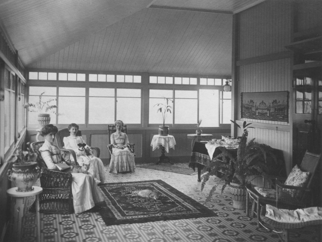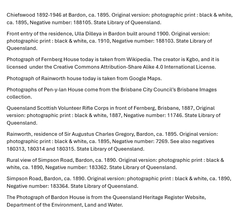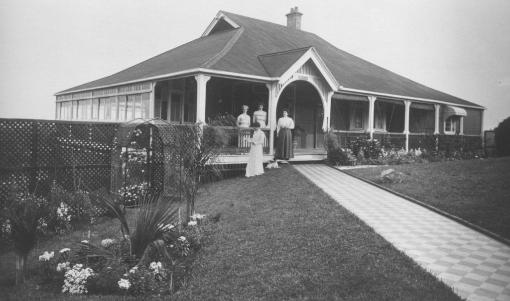 According to the caption, this is “Dr John Lockhart Gibson, ophthalmologist, his wife Mary and his mother Annie Bush Gibson on the verandah of ‘Chiefswood’, in Simpsons Road, Upper Ithaca Creek.” Chiefswood was a family home between 1892 and 1946, when it was purchased by the Sisters of Mercy, who rather unmercifully demolished it. It was a Queenslander-style house on stumps with a verandah. Presumably, Dr and Mrs Gibson didn’t have any toddlers, given that said verandah is not enclosed.